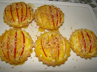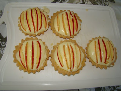 Passo 14: Aplique as fatias de maçã sobre o creme das tortas.