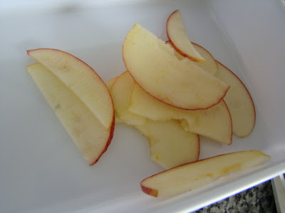Passo 13: Coloque as maçãs recém fatiadas dentro do suco peneirado das 4 laranjas. Isso evita que as maçãs escureçam.